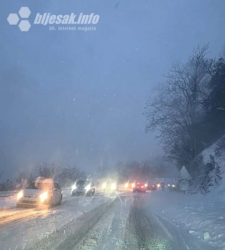 Snijeg stigao do Jablanice: Kolone na M-17 duge nekoliko kilometara