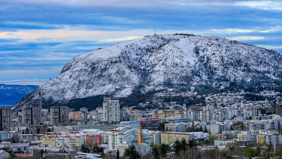 Stanovnike Mostara je ove proljetne srijede dočekao snježni pokrivač. (Foto: Bljesak.info)