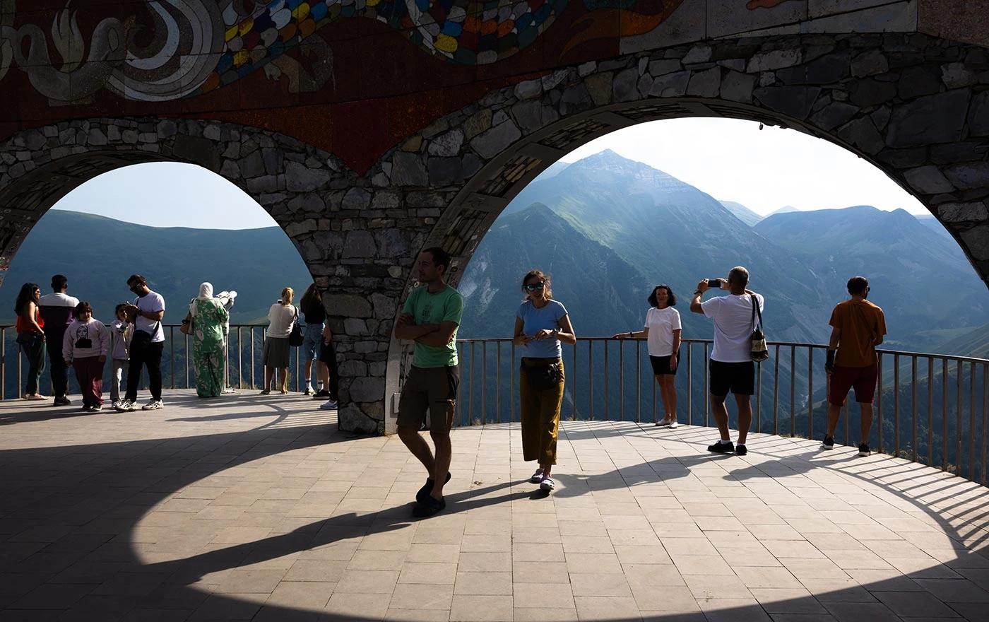 Spomenik rusko-gruzijskog prijateljstva, izgrađen u doba Sovjetskog Saveza kako bi simbolizirao 200 godina odnosa između Rusije i Gruzije, u planinskoj oblasti Gudauri, Gruzija. Poseban po svojoj lokaciji s koje se pruža panoramski pogled na Kavkaz, spomenik se izdvaja i po povijesnom značaju i po vizuelnom dojmu. Unutrašnja površina ukrašena je velikim mozaicima koji prikazuju prizore iz zajedničke historije dviju zemalja, kulturne motive i figure koje simboliziraju suradnju. Žive boje i složena izrada mozaika posjetiocima pružaju doživljaj koji je istovremeno historijski i umjetnički. Otvoren 1983. godine, spomenik i dalje predstavlja jednu od glavnih atrakcija regije. Posebno tijekom ljetnih mjeseci, i domaći i strani turisti posjećuju ovo mjesto kako bi sa njegove terase uživali u zadivljujućem pogledu na Kavkaz. Foto: Anadolija
