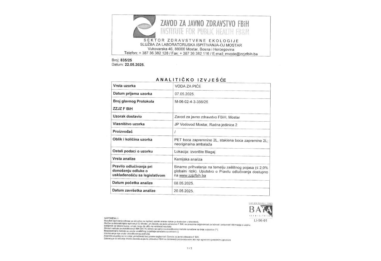 Foto: JP Vododvod Mostar / Analitičko izvješće Zavoda za javno zdravstvo FBiH