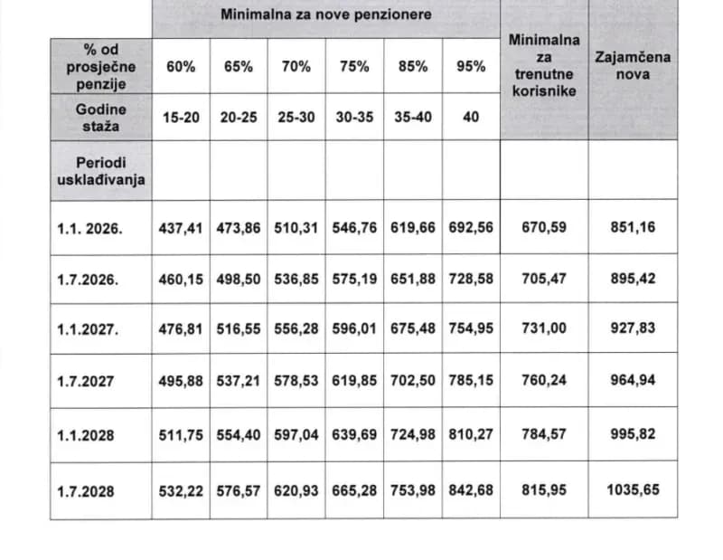 Izračun najnižih mirovina za nove korisnike u FBiH