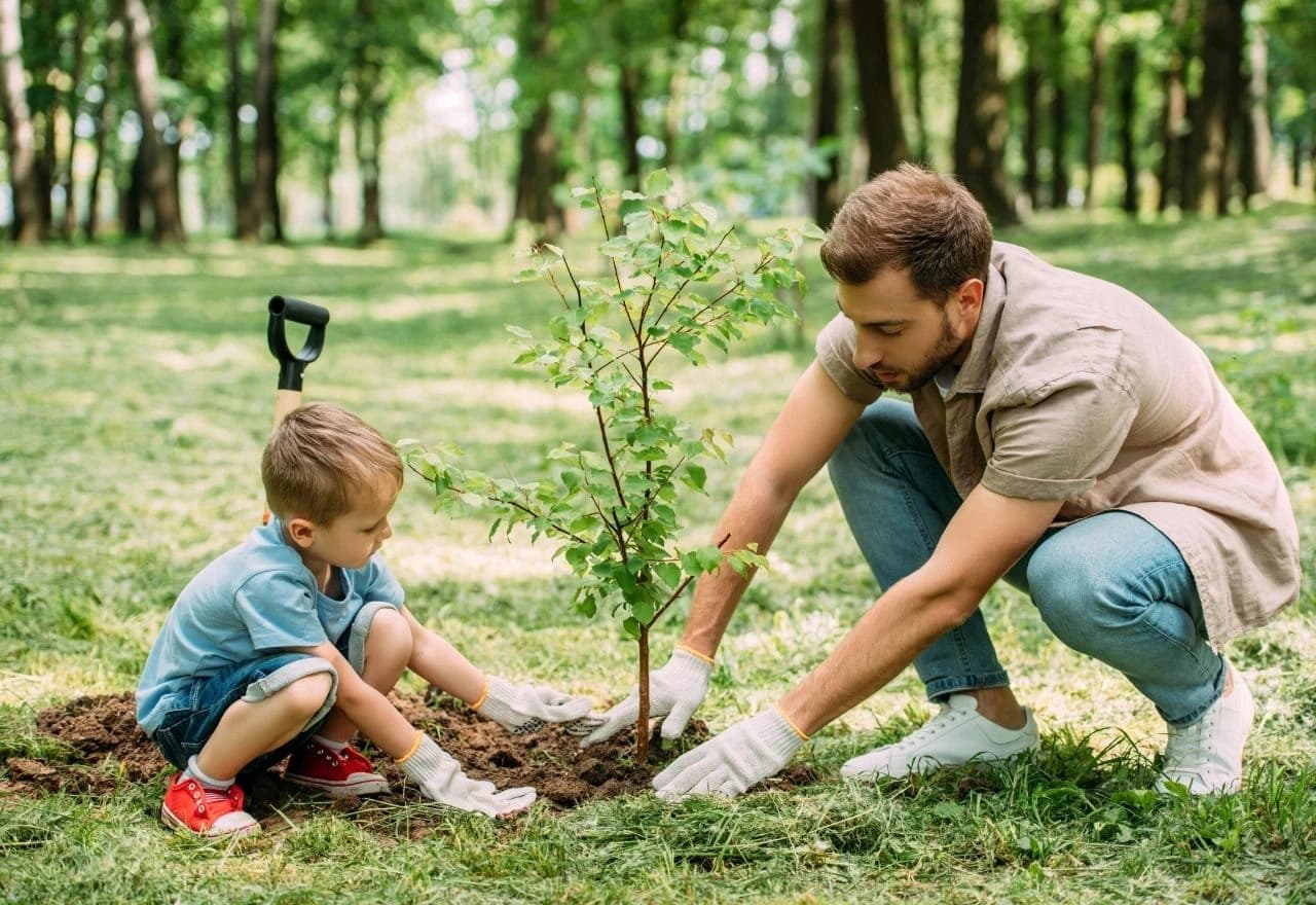 Otac i sin sade drvo