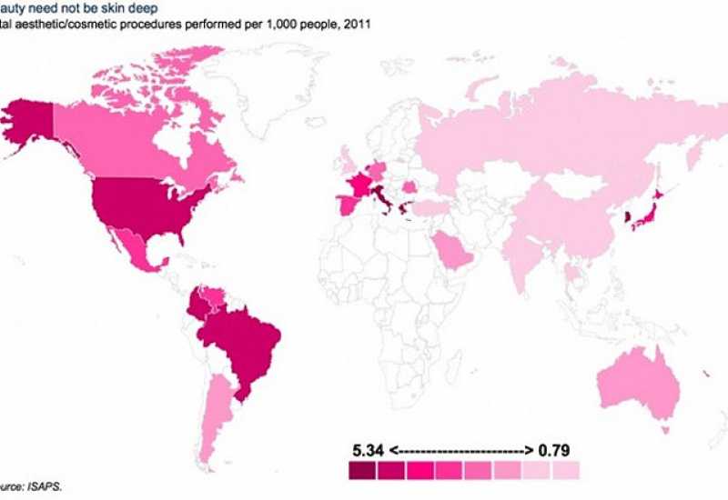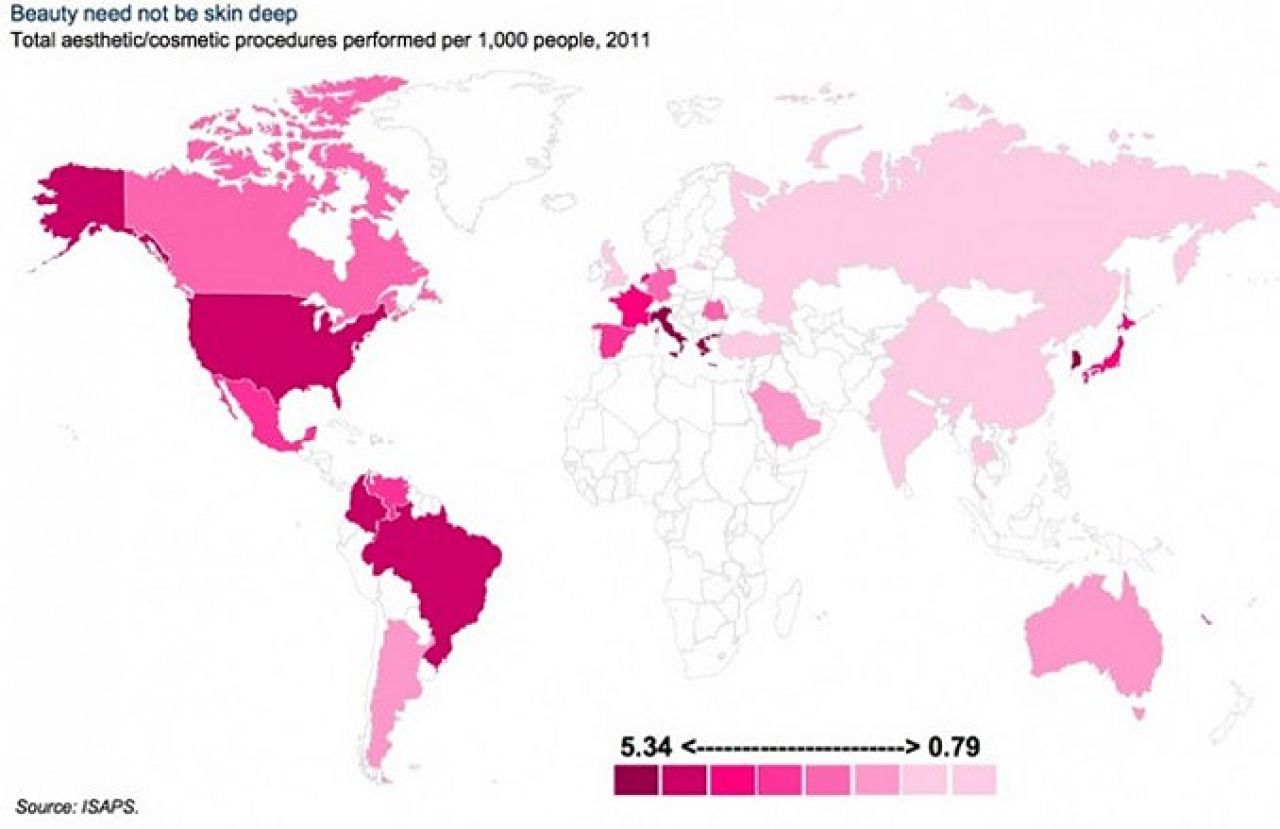Ako ste mislili da su zemlje u kojima se najviše vole plastične operacije Brazil ili Tajland, gledate previše pornića, zorno pokazuje karta koju donosimo.