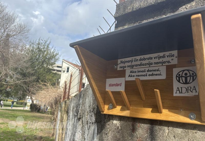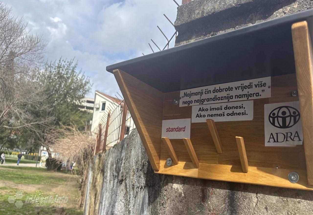 Na vješalicama su naljepnice s natpisima: "Najmanji čin dobrote vrijedi više nego najgrandioznija namjera" i "Ako imaš donesi, ako nemaš odnesi", čime se poziva građane da daruju odjeću i druge potrepštine onima kojima su najpotrebnije.