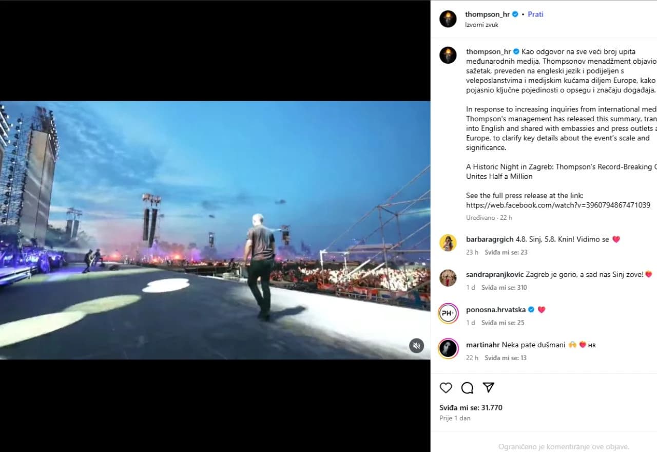 Thompson objavio video s koncerta i poslao poruku svijetu