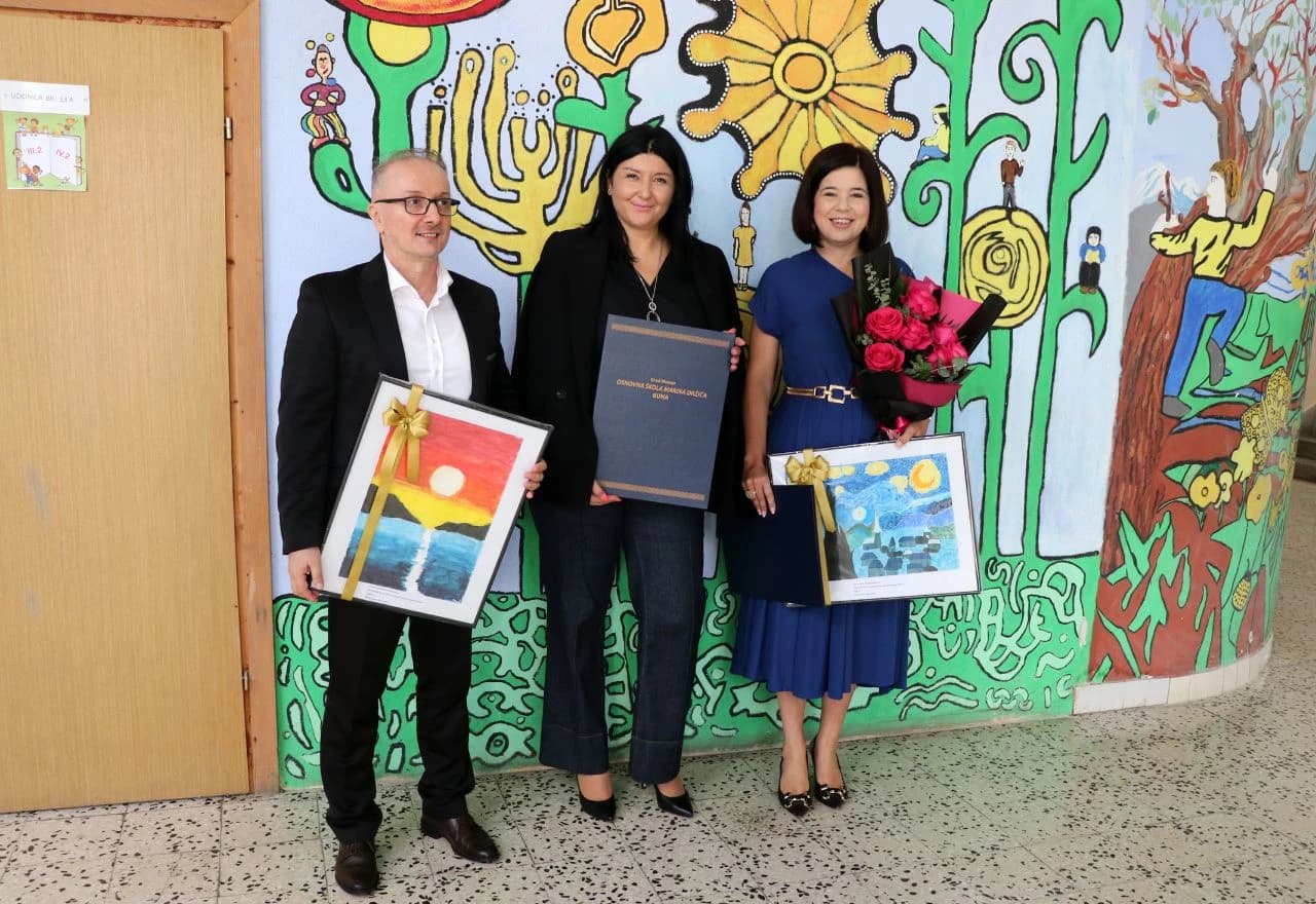 Foto: Vlada HNŽ/K / Buhač i Velagić posjetili učenike na početku školske godine u Mostaru