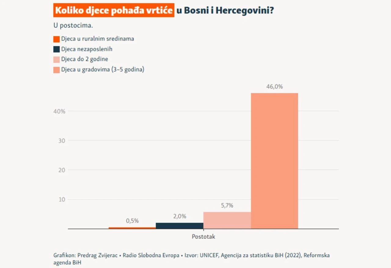 Foto: Radio Slobodna Europa / Grafikon 1: Koliko djece pohađa vrtiće u BiH
