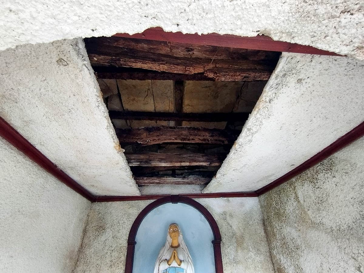 Foto: M.J. | Bljesak.info / Grede i daske u kapelici u Zarečju prijete da padnu Gospi na glavu