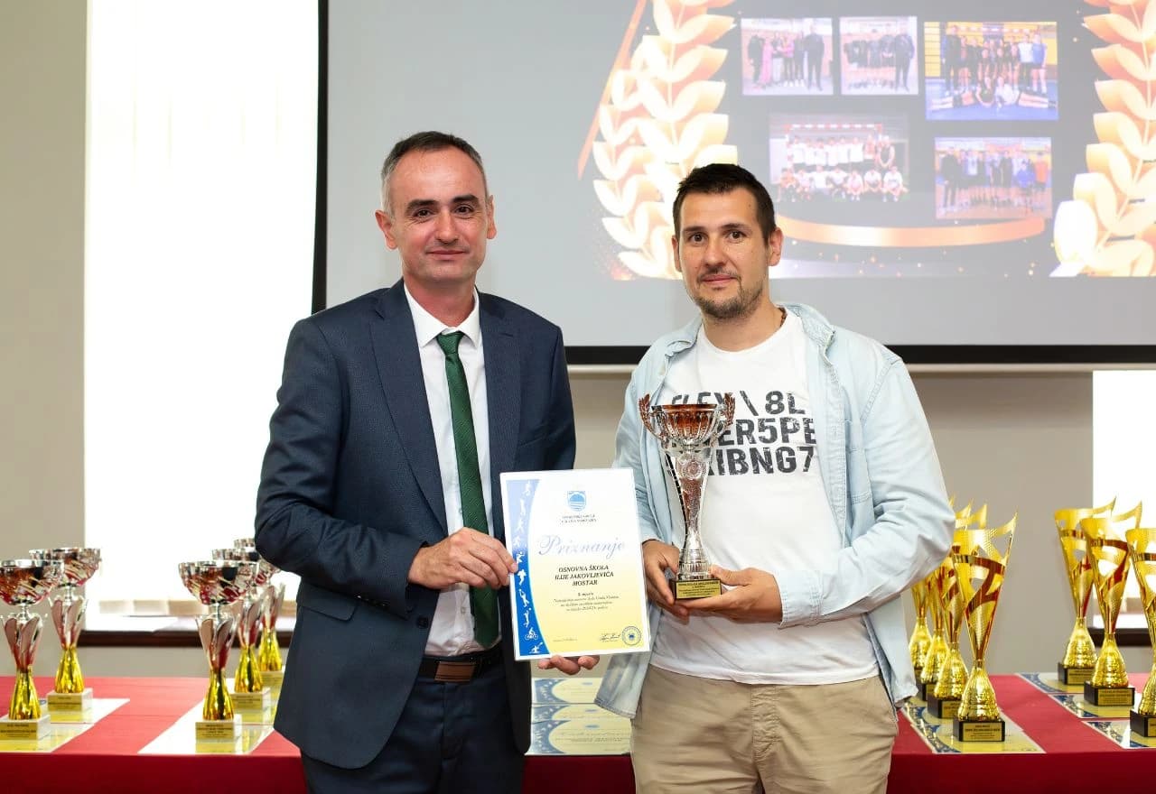 Foto: Sportski savez Grada Mostara / Dodjela priznanja Osnovnoj školi Ilije Jakovljevića