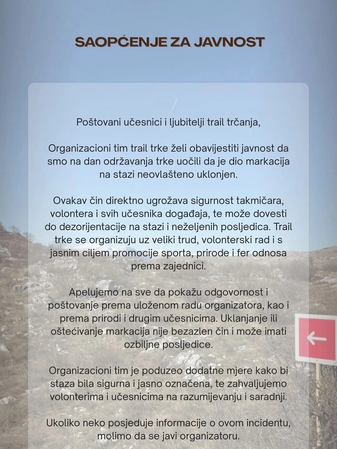 Priopćenje za javnost o uklanjanju markacija