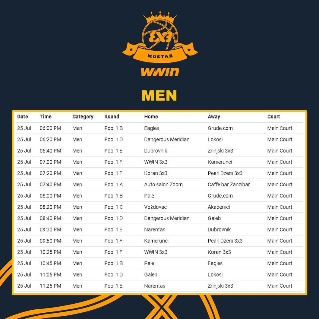 Raspored muškog turnira