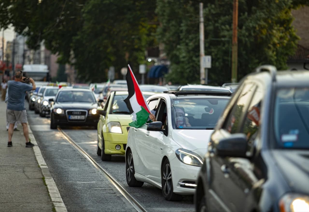 Foto: Federalna tv / Podrška iz Sarajeva: Automobili u koloni za Iran i Palestinu