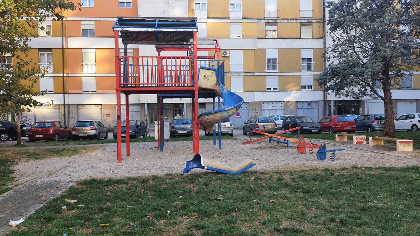 Uništeno igralište u mostarskom naselju Eksperiment