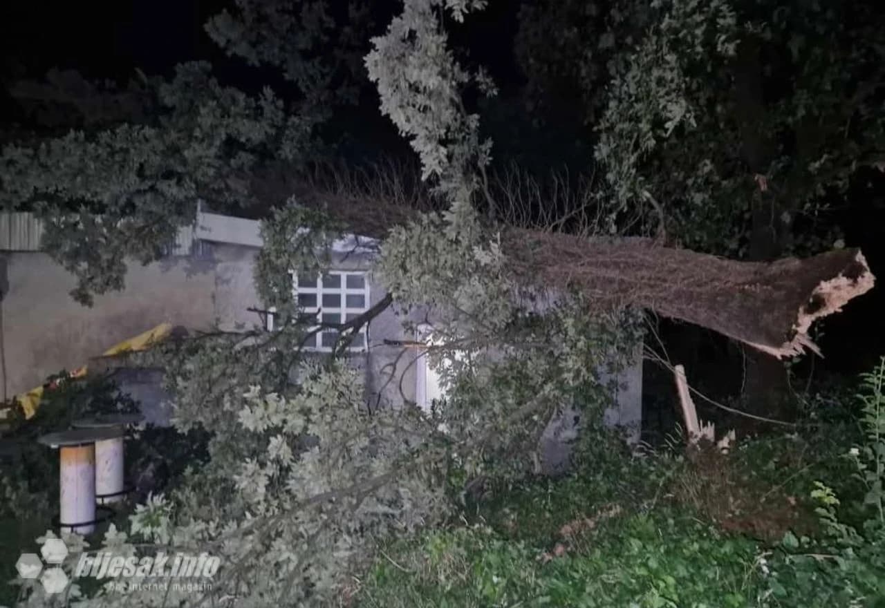 Široki Brijeg: Jak vjetar srušio stablo, ograda pala na automobil