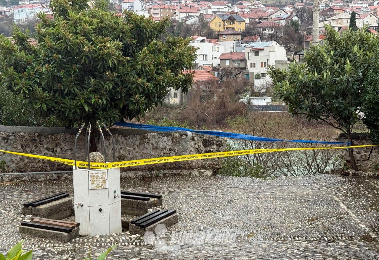 FOTO | Novo klizište u Mostaru: Urušio se zid u dvorištu džamije uz Neretvu