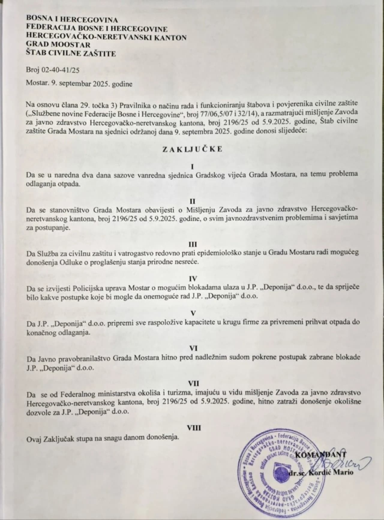 Foto: Grad Mostar / Odluke