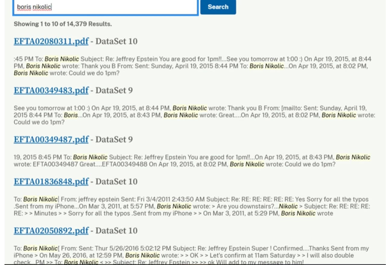 Boris Nikolić ponovno spomenut u istrazi o Epsteinovim vezama